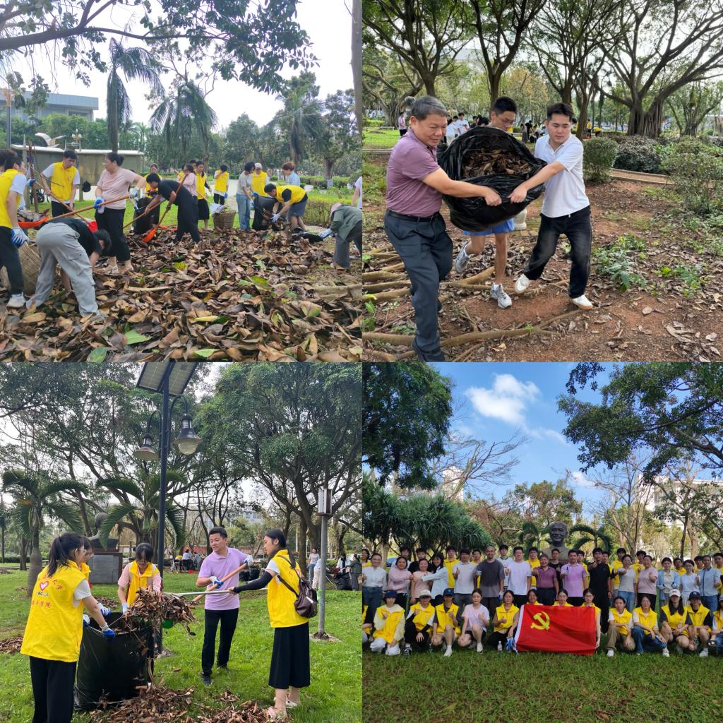 为积极响应学校关于开展校园环境清洁与爱国卫生运动的号召,营造整洁优美、健康和谐的校园环境,10月16日上午,经济学院领导陈创、钟桂安组织了100余名师生志愿者全身心投入到图书馆前花坛区域清理积水、清除垃圾等工作中,共清理走了16车垃圾。