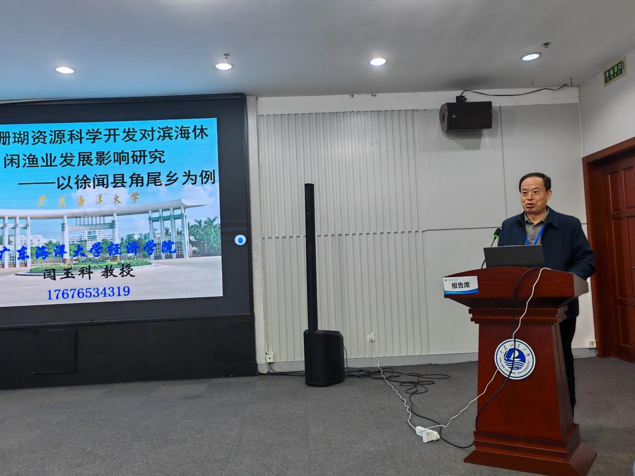 陈伟院长主持了中国林牧渔业经济学会渔业经济专业委员会和中国水产学会渔业经济与政策专业委员会专家论坛;闫玉科教授以“南海珊瑚资源科学开发对滨海休闲渔业发展影响研究——以徐闻县角尾乡为例”为题做了专题报告。报告概述了南海珊瑚资源科学开发的现状、南海滨海休闲渔业发展的现状和南海珊瑚资源科学开发对滨海休闲渔业发展影响的现状,系统分析了徐闻县角尾乡珊瑚资源科学开发与有效利用产品开发初级化,有效治理体系待完善,共赢机制未建立等问题,并提出了坚持新发展理念科学开发珊瑚资源,深度开发珊瑚文化和渔家文化,科学构建有效珊瑚保护与开发治理体系,建设“专业管护+创新研发+志愿服务”人才队伍等科学开发利用南海珊瑚资源促使滨海休闲渔业高质量发展的系列对策建议。报告内容受到了与会领导、专家的高度评价,引发了热烈讨论,为我国滨海休闲渔业特色化高质量发展指明了方向。