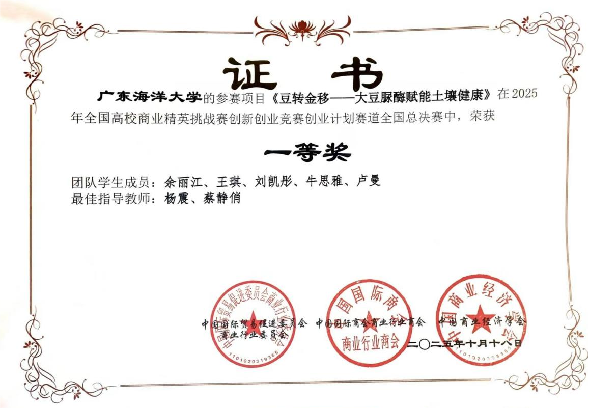 其中,“豆转金移——大豆脲酶赋能土壤健康”“集种生智——智能无人化育苗领域引领者”这两支荣获全国一等奖的项目均为我校经济学院学子打造的优质项目,充分展现了经院学子在创新创业领域的扎实功底与突出潜力。