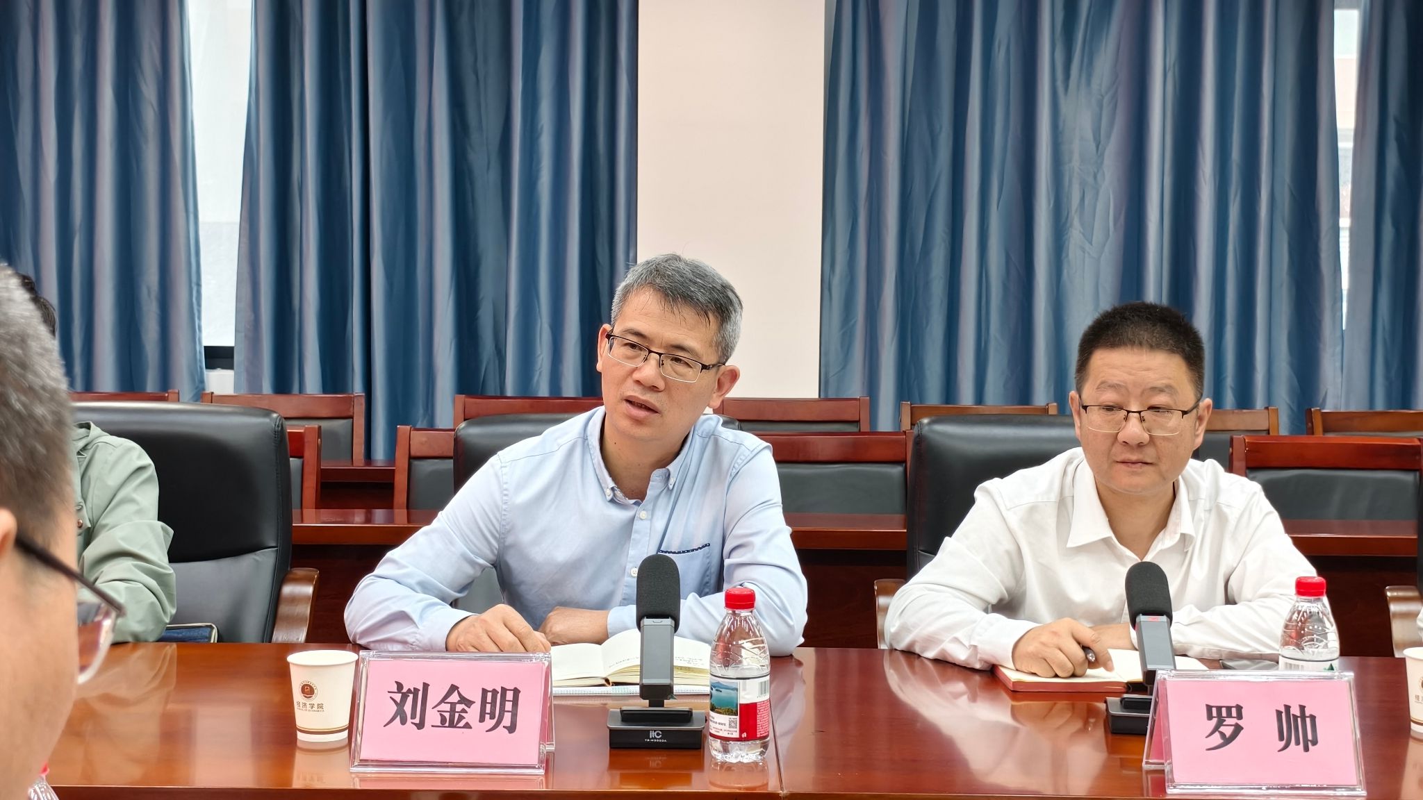 刘金明代表学院感谢创新创业学院一直以来对学院工作的支持与帮助,感谢副院长邱超与吴明发一行为经济学院创新创业工作传经送宝、赋能加油,表示学院将以此次工作交流为契机,进一步深化与创新创业学院的联动合作机制,希望双方在着力不同学科专业尤其是新文科与新工科交叉融合,扎实推动促进创新创业工作提质增效等方面同频共振、相互成就。
