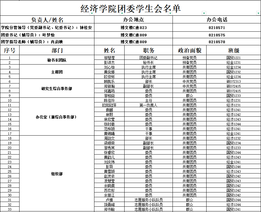 分管24级经济系、国贸系本科生。负责学生会,校友,助贷,工会委员;分管领导安排的其他工作。