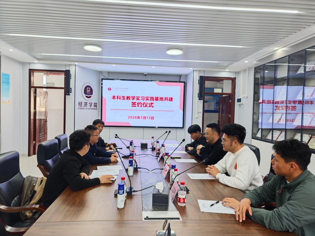 1月13日,内蒙古伊利实业集团股份有限公司广州分公司湛江区域总负责人晏绪伟带队到访广东海洋大学经济学院,双方在学院610会议室举行本科生实践教学基地签约暨挂牌仪式。经济学院副院长罗帅、金融系系主任杨国华及辅导员肖启映出席,与企业代表共同见证。