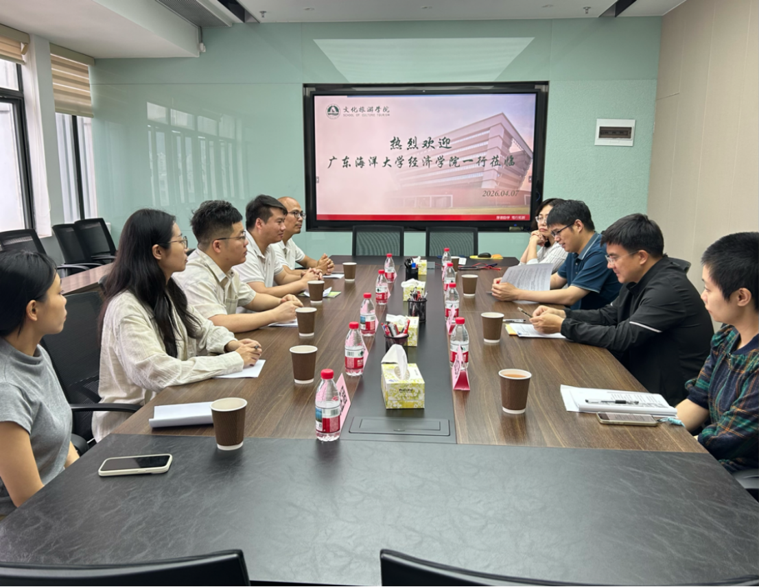 2026年4月7日,经济系、国贸系一行应邀赴广东财经大学文化旅游学院,围绕教研教改、专业建设、课程创新、产教融合、学术科研等核心议题开展深度交流座谈。经济学院国贸系主任、经济系副主任及骨干教师代表参与本次交流活动,文化旅游学院副院长、系主任代表及教学科研管理人员代表热情接待并全程参与。