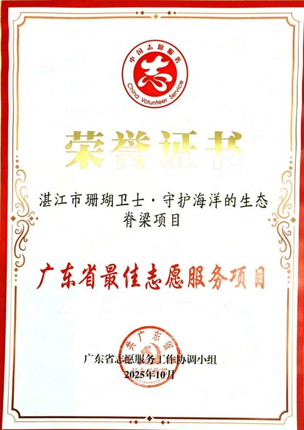 最佳志愿服务项目殊荣既是广东海洋大学实施“内涵发展、特色发展、创新发展”战略的典型成效,经济学院“一核双轮三维四平台”创新创业教育模式成果的生动写照,也彰显了广东海洋大学师生志愿者在生态保护领域的担当。“珊瑚卫士”的星光正汇入南粤志愿服务的星河,让海洋生态保护的力量生生不息。