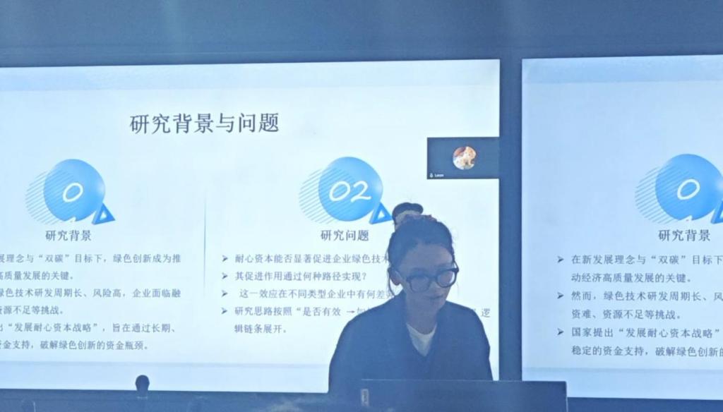 我院吕晶晶老师团队提交的论文《耐心资本何以驱动绿色创新?—技术资金双元协同的破局之道》成功入选,并由研究生翁锦娜代表团队在分论坛上进行汇报。该论文立足于“双碳”目标,系统剖析了耐心资本影响企业绿色创新的作用机理,不仅揭示了其中的中介机制与边界条件,还进一步厘清了其在不同类型企业中的异质性影响。翁锦娜同学的汇报获得了与会专家的高度评价与宝贵建议,为该研究的进一步完善提供了重要参考。