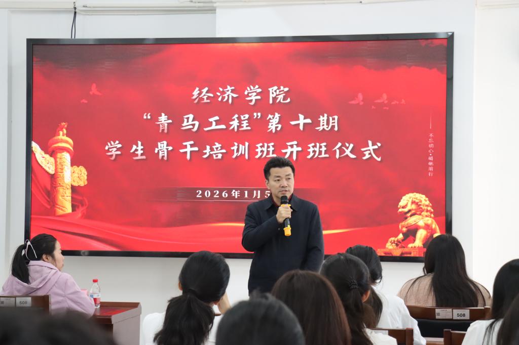 2026年1月5日下午,经济学院第十期“青年马克思主义者培养工程”培训班开班仪式在博文楼C座508会议室举行。学院正处级辅导员、党委副书记钟桂安,全体辅导员以及本期培训班41名学员共同参加仪式。