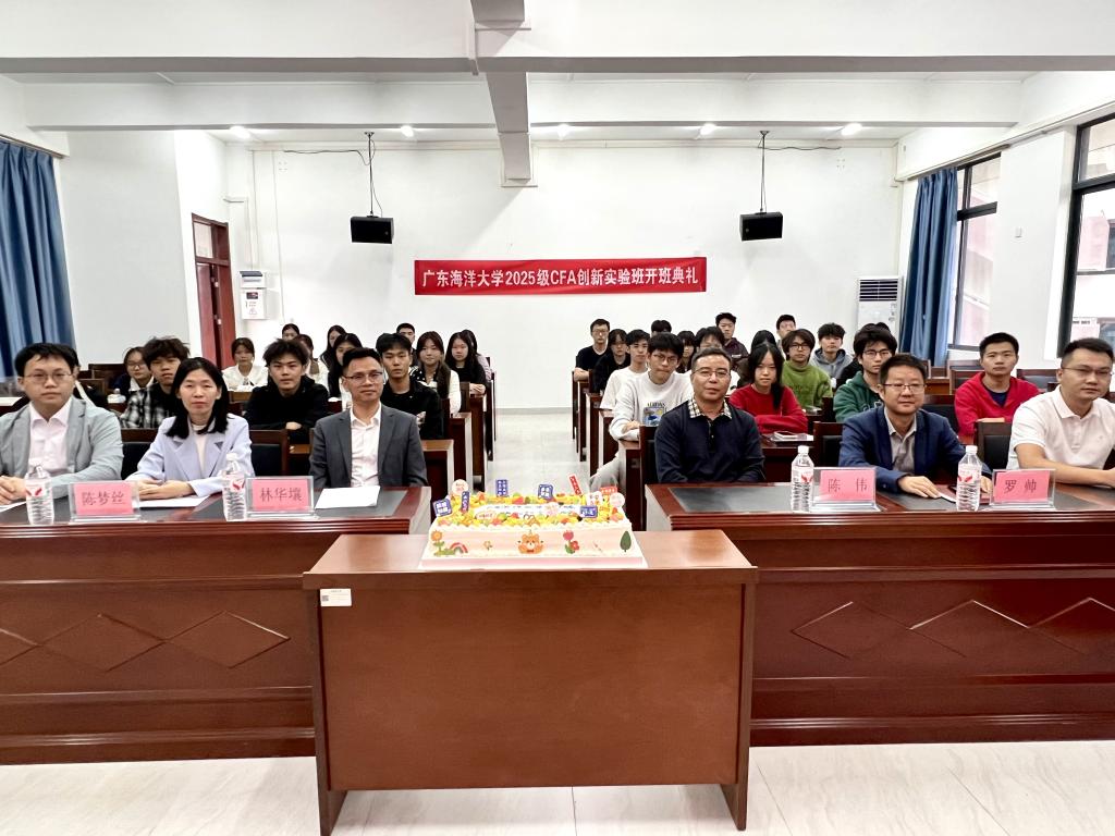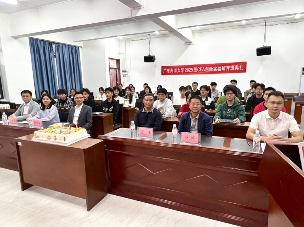 秋阳和煦,天高云淡。2025年10月22日下午,广东海洋大学经济学院经济与金融CFA创新实验班开班仪式在湖光校区博文楼C508隆重举行。经济学院党委副书记&院长陈伟、经济学院副院长罗帅、合作企业代表——高顿教育集团华南区区域总监林华壤先生,以及首届CFA创新实验班全体新生、老师代表齐聚一堂,共同见证了这一推动学院金融人才培养模式改革创新的重要时刻。