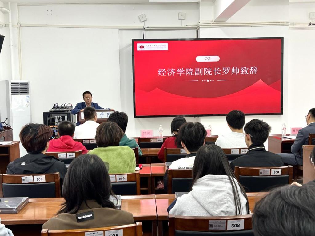 仪式伊始,经济学院副院长罗帅发表了热情洋溢的致辞。他首先代表学院对CFA创新实验班的成功开设表示热烈祝贺,并对首批通过选拔、怀揣金融梦想的同学们表示欢迎。罗院长指出,在当前金融科技蓬勃发展与全球经济格局深刻变革的时代背景下,设立CFA创新实验班是经济学院主动对接国家金融发展战略、服务粤港澳大湾区建设、培养具备国际竞争力的高端金融人才的关键一步。他殷切寄语同学们,“要珍惜来之不易的优质平台,不仅要将CFA的知识体系视为专业学习的‘加速器’,更要将其作为锤炼金融职业道德、塑造全球化视野的‘磨刀石’”, 希望同学们能迎难而上,不负韶华,成长为德才兼备的金融行业未来领军者。
